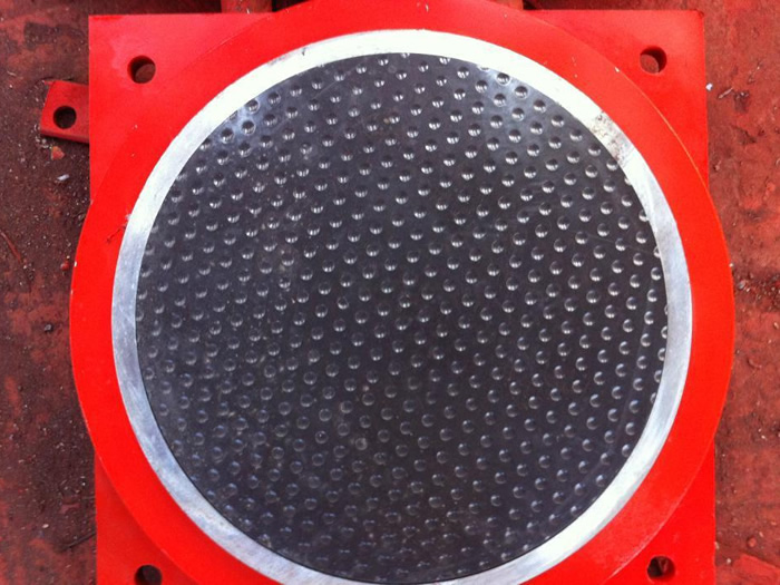 QZ系列球型支座是由上支座板、下支座板、凸形中間板及兩塊不同形狀的聚四氟乙烯板組成。下支座板中間為一凹形球面,同凸形中間包相對應(yīng),兩者之間有一弧形四氟板,通過求美棉與滑動來滿足梁端的轉(zhuǎn)動;上座板上的不銹鋼板與中間鋼板上的另一四氟板組成第二滑動面,完成梁體因溫差諸多原因所產(chǎn)生的伸縮位移。
