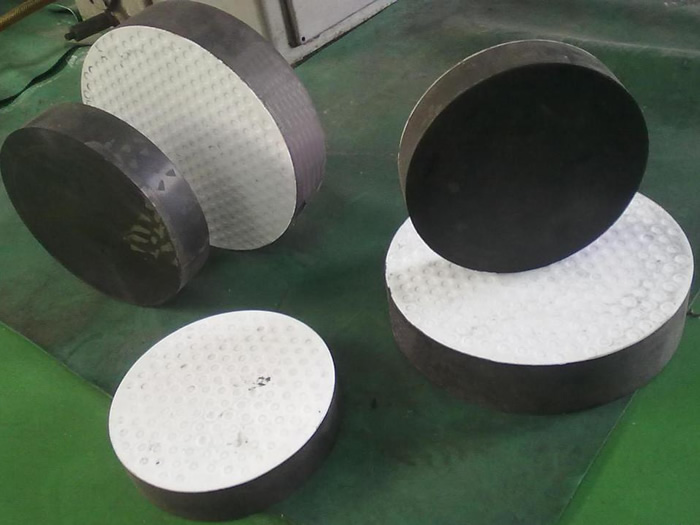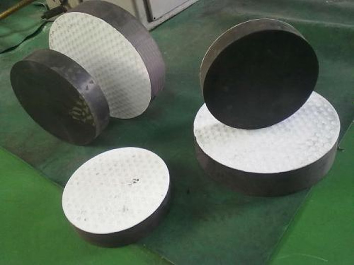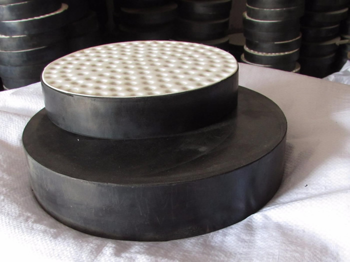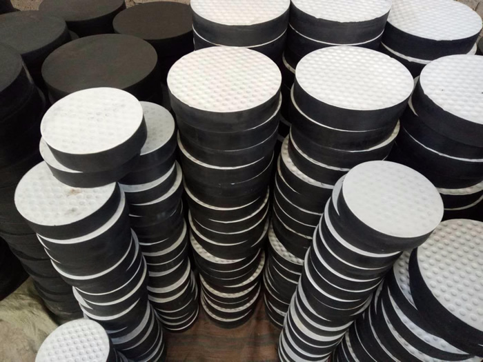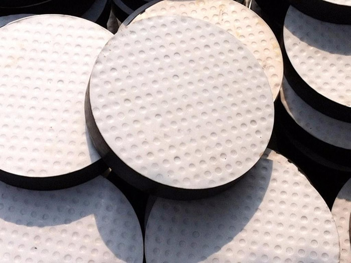 四氟滑板橡膠支座就是在普通板式橡膠支座的表面粘復(fù)一層1.5mm-3mm厚的聚四氟乙烯板,就能制作成橡膠支座,又稱之為:四氟滑板式支