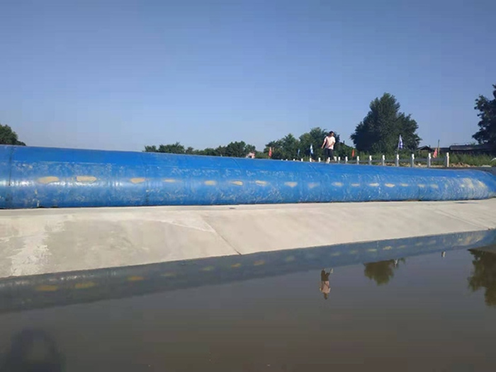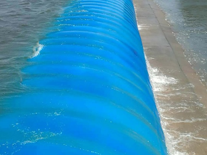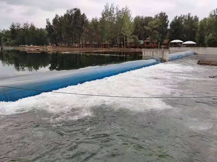橡膠壩是隨著高分子合成材料工業(yè)的發(fā)展而出現(xiàn)的一種新型水工建筑物,由高強(qiáng)度帆布做強(qiáng)力骨架與合成橡膠構(gòu)成,錨固在基礎(chǔ)底板上,